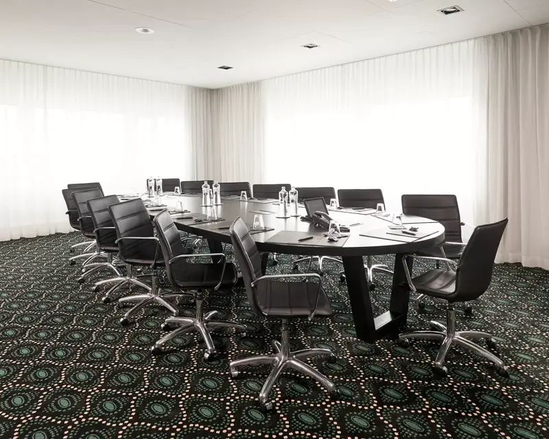 - Feste Boardroom-Bestuhlung mit freiem Raum um den Tisch