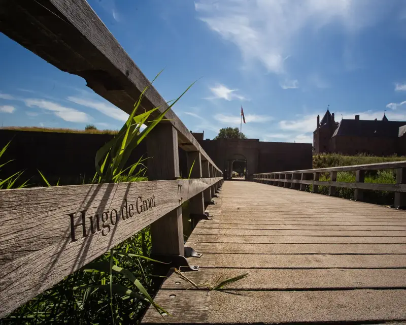 In the castle, the outer bailey, and the soldier's village, there is something to experience for young and old alike. In the museum, you will learn about Hugo de Groot, the Middle Ages, and the Dutch Water Line. With fun and interactive activities, you will learn more about gunpowder, weapons, and defense works. Explore the Castle at your own pace or book a (private) guided tour with a guide.